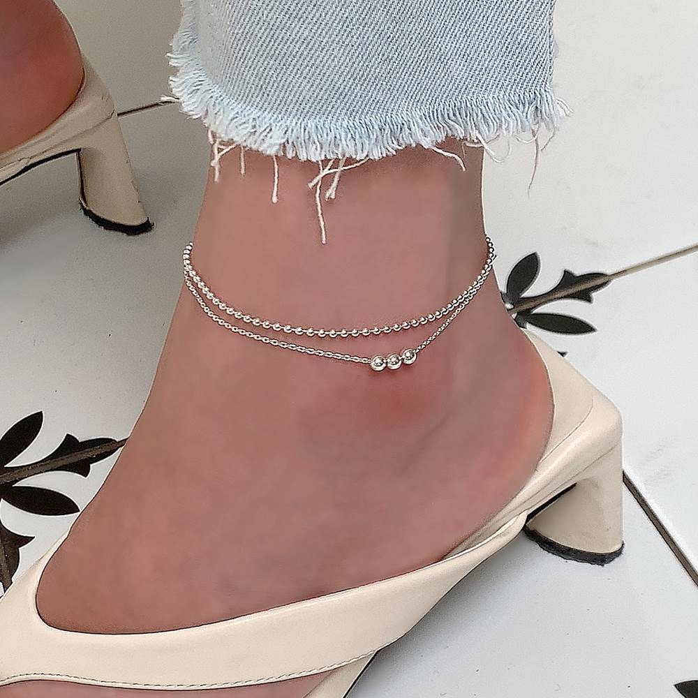 925실버 볼 군볼 두줄 2줄 여성 은발찌 레이어드 여자 발찌