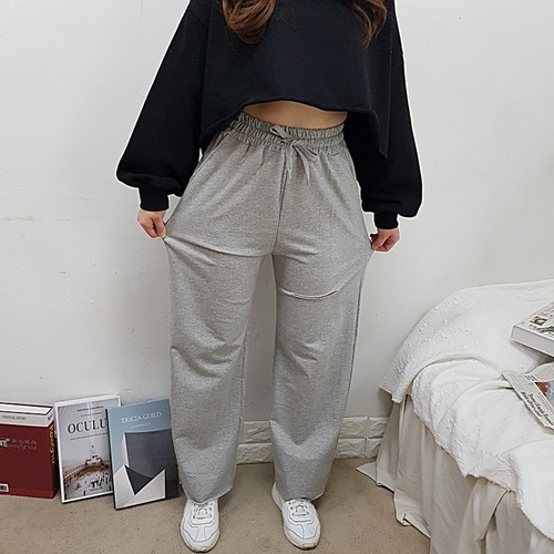 쭈리 컷팅 와이드 츄리닝 바지 [루즈핏 면소재 밴딩 운동복 트레이닝복 봄 여름 4컬러]