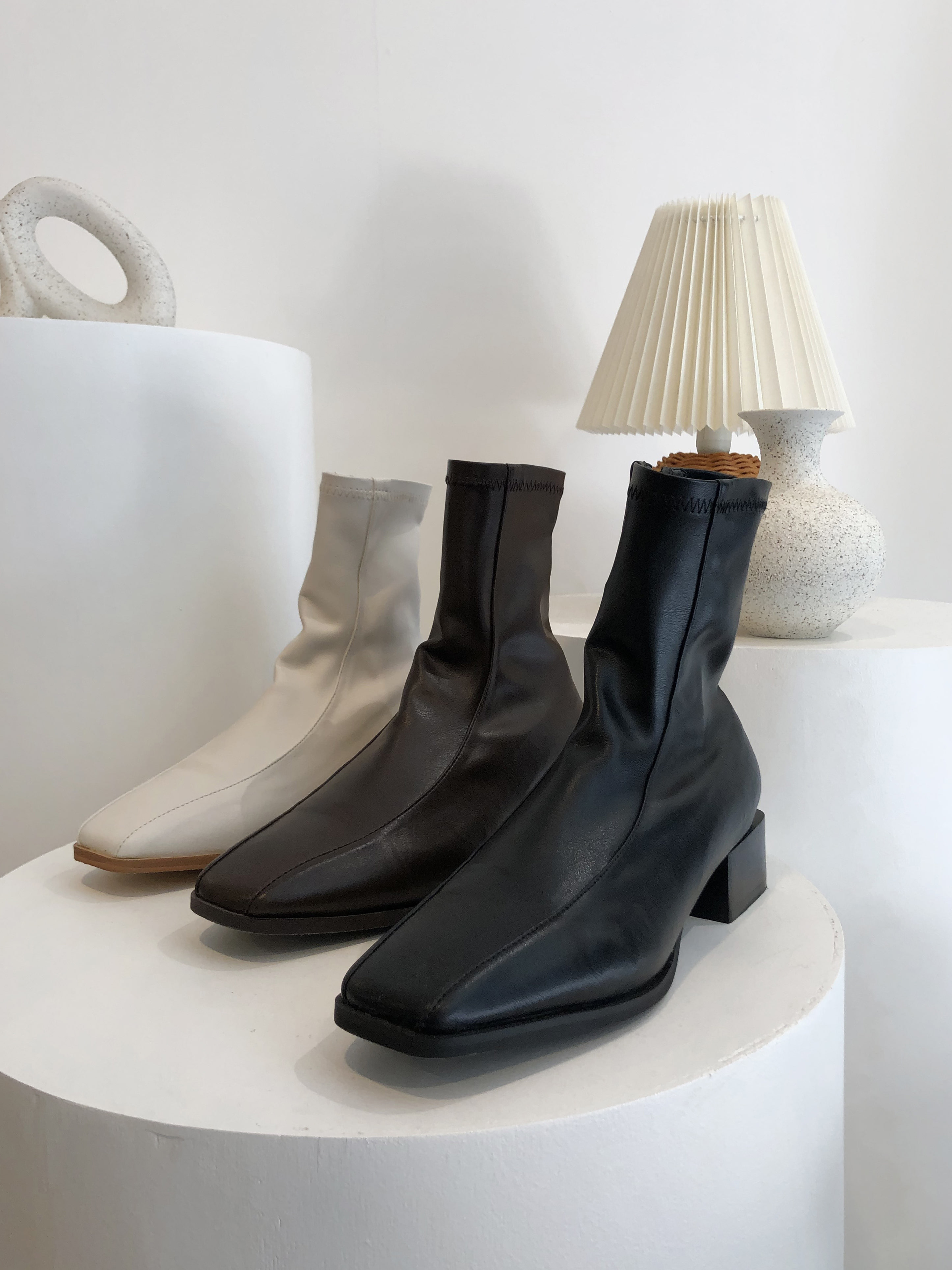 디크 스퀘어 절개 앵클 부츠