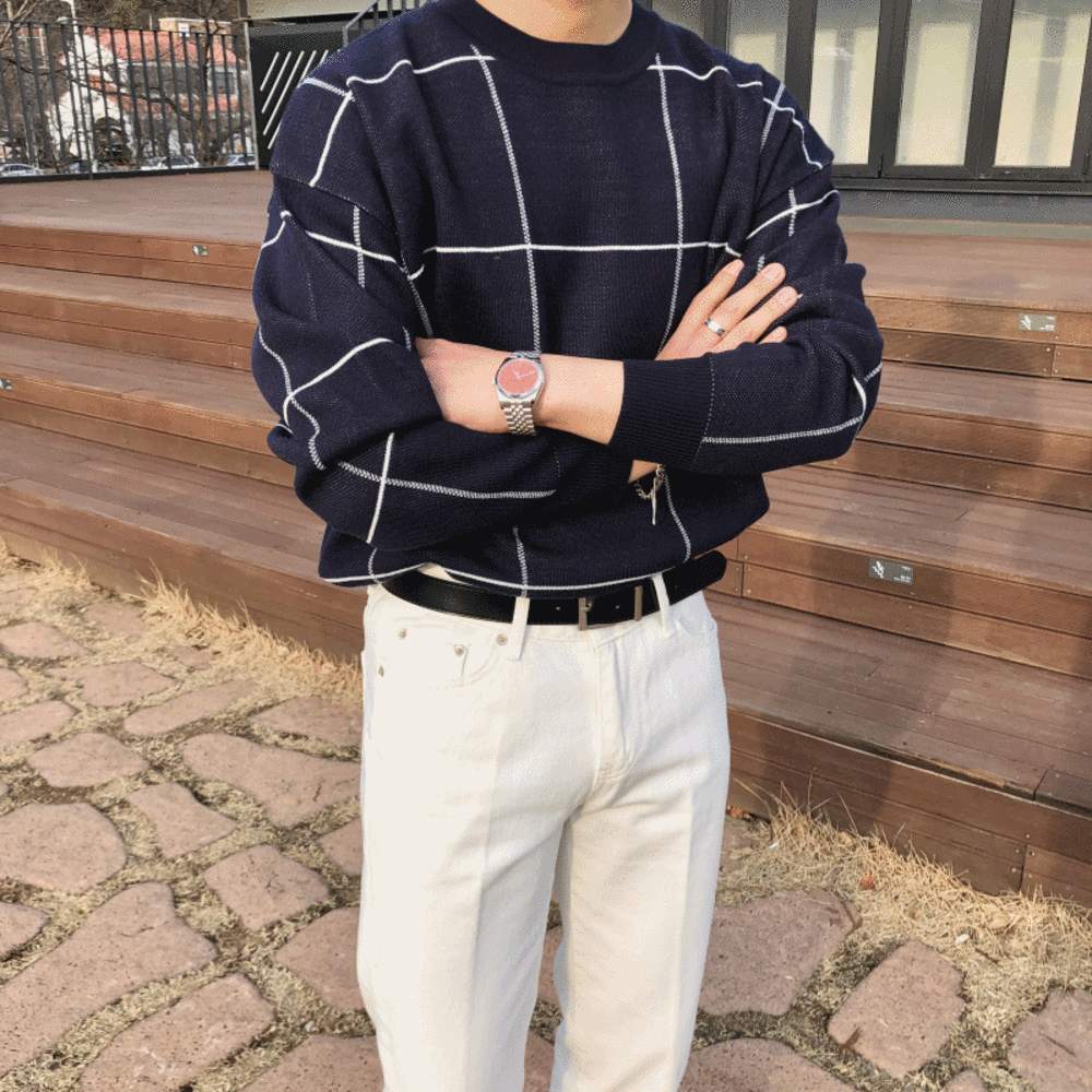 AI 남녀공용 체크 박스 라운드니트 ( 4color )