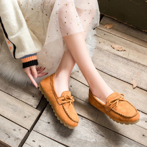 S114 리본 장식 스웨이드 털신발 퍼 안감 모카신 단화 로퍼 드라이빙슈즈 2cm