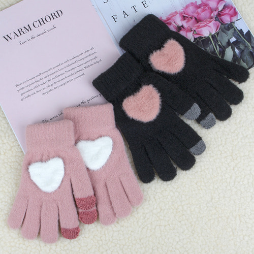 스마트폰 터치 핸드 워머 하트 앙고라 니트 겨울털 여성 장갑 캔디플래닛