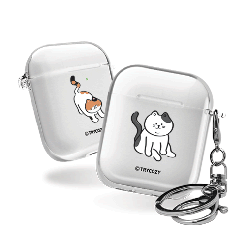 주문제작 에어팟1,2세대 클리어케이스 귀여운 뚱냥이 에어팟케이스