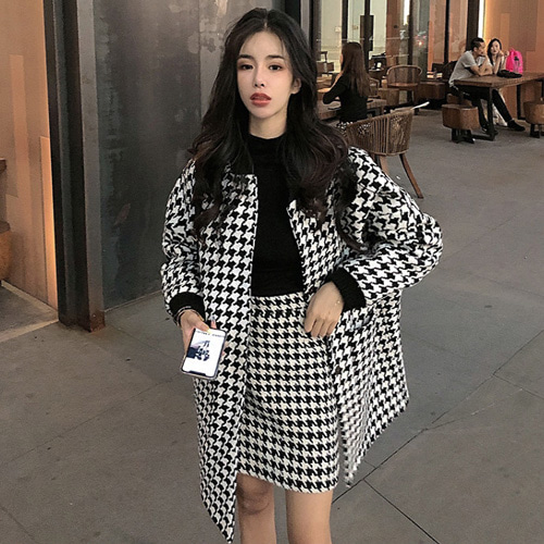 투피스 하객룩 모임룩 하운드 투스 정장 자켓+패턴 스커트 SET