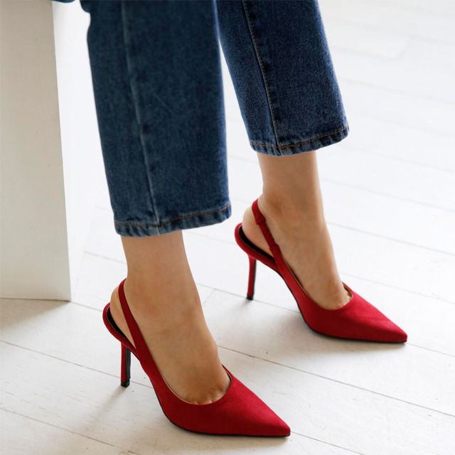 즈리엘 국내제작 스웨이드 스틸레토 슬링백힐 9cm