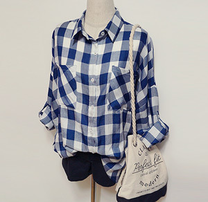 깅엄/체크/무늬/블라우스/셔츠/큰체크/파란색