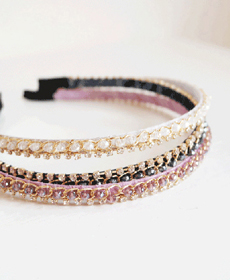 당일배송 비즈 두줄 큐빅 머리띠 헤어밴드