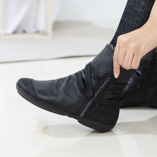 지쎄수제화 천연양가죽 퍼안감 솔리움 숏부츠 2cm
