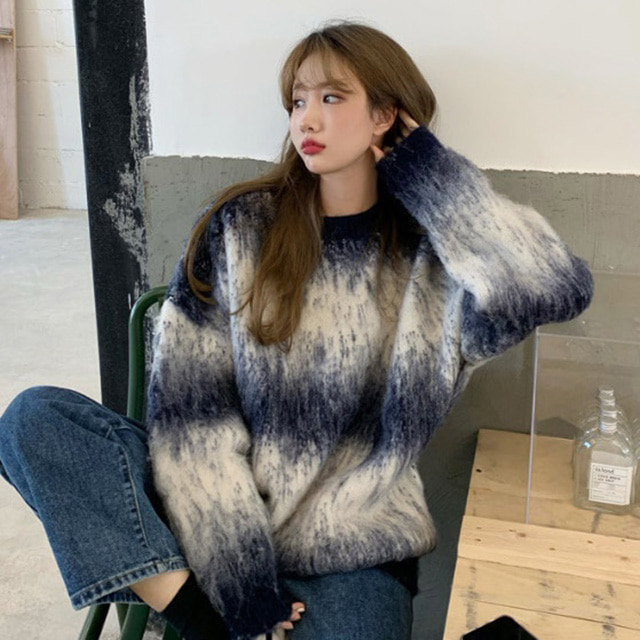 무료배송 눈의왕국 그라데이션 루즈핏니트 (그레이,블루)
