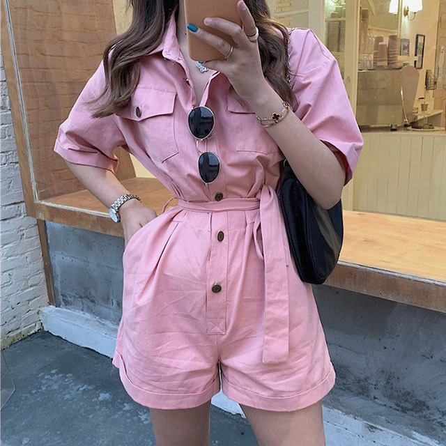 무료배송 봄캐주얼 사파리반팔 점프수트 (핑크,오렌지)