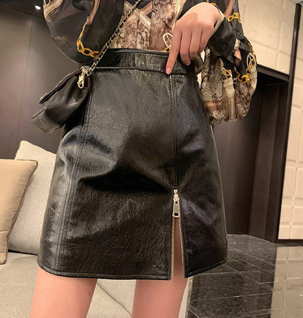 [FEa1638] 수입보세 명품스타일미시옷 지퍼트임 레더 스커트
