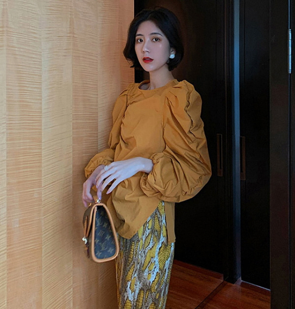 [MAR0567] 수입여성의류 명품스타일여성의류 베이직 셔링 빅퍼프 블라우스