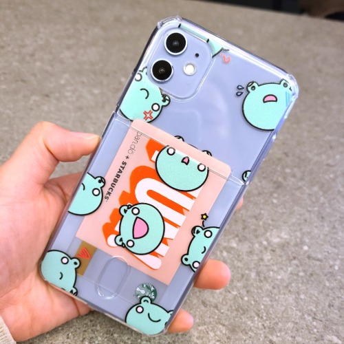 카드수납형) 청개구리 패턴 아이폰 갤럭시 폰케이스
