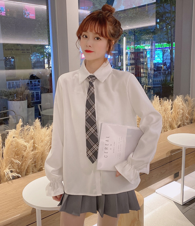 [3color] 퍼프 교복 셔츠+체크 넥타이 졸업사진/졸업/앨범촬영/졸업패션/단체룩