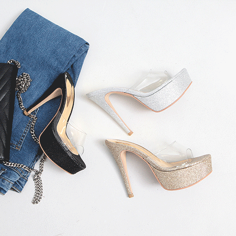 ♥국내제작♥ 클리어 글리터 가보시 뮬 슬리퍼 킬힐 13.5cm●