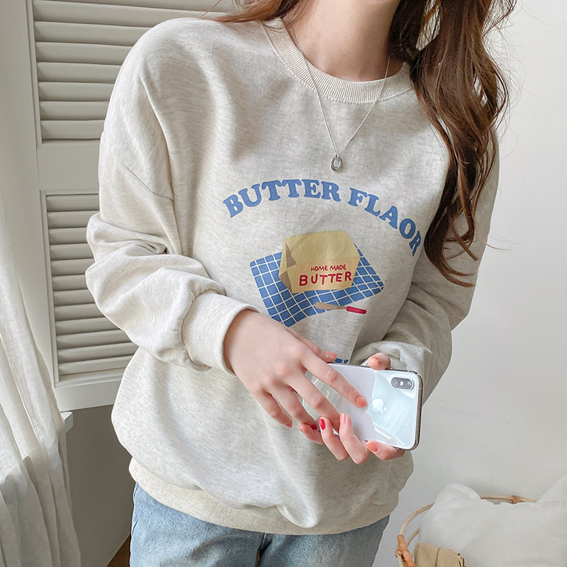 [🔥아뜨데이 앵콜할인🔥]🚚부분당일발송 1만5천장 돌파✨ 버터 일러스트 프린 루즈핏 기모 맨투맨티 맨투맨 ts2422