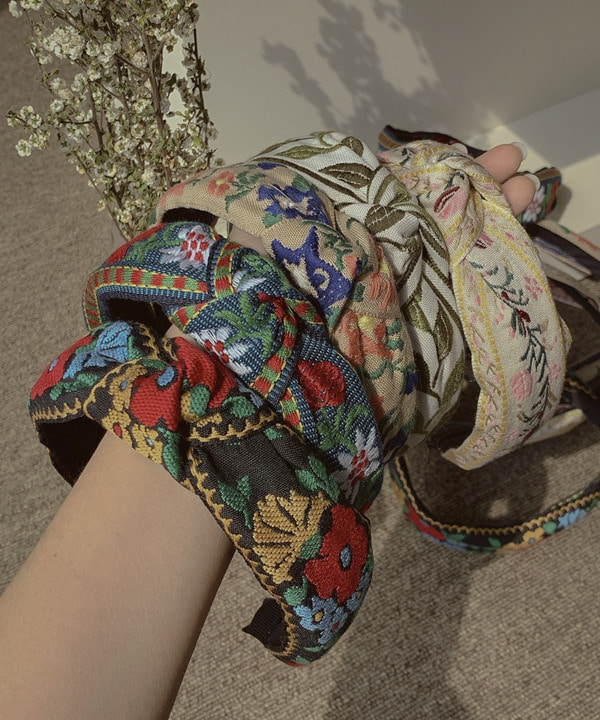[1+1할인] Ethnic Retro 러블리 자수 헤어밴드 넓은 머리띠