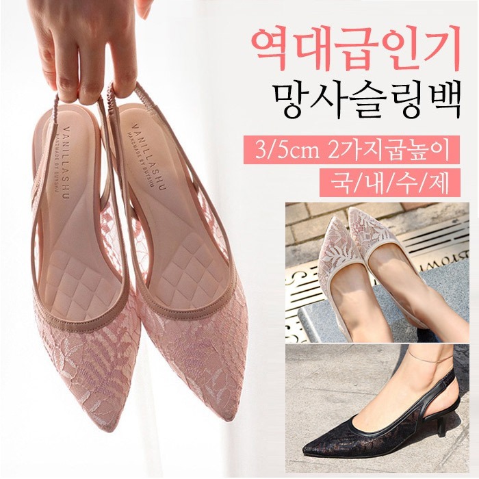 *[원단품절로 인한 초특가/국내수제] 뉴 코코리 레이스망사 탄력몰드 백밴딩 슬링백힐(3cm,5cm)