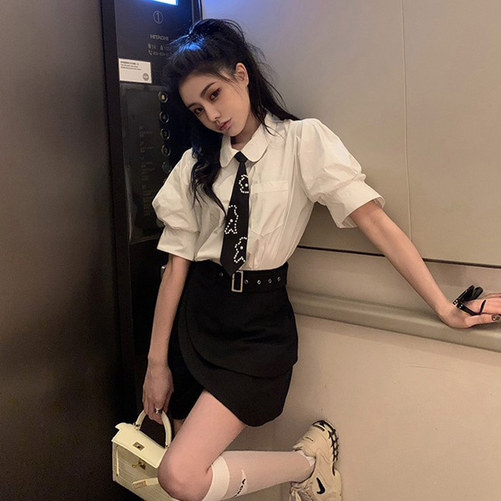 무료배송 [코디세트 셔츠+스커트] 오프콜스 벌륜 투피스룩 [금요기획 #SS시즌 #프레피룩 #스쿨룩 #아가일체크]