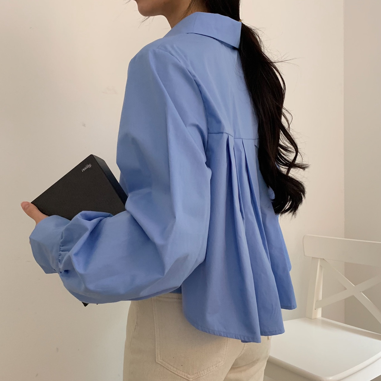 뒷모습이 매력적인, 플리츠 크롭 블라우스 셔츠
