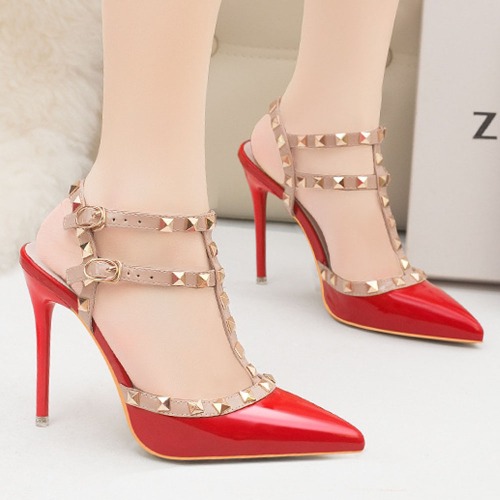 스터드 에나멜 슬링백힐 하이힐 여성구두 sk-36872