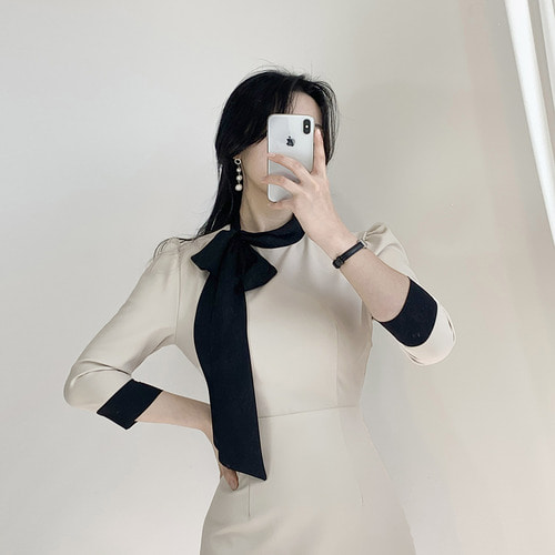 [하객룩/졸업식] 옆리본 승무원 단정한 7부 원피스/2color