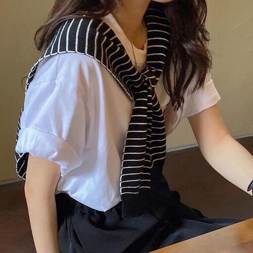 [기획특가] 베이직 레이어드 어깨 숄 가디건 페이크 니트 스트라이프 머플러 워머