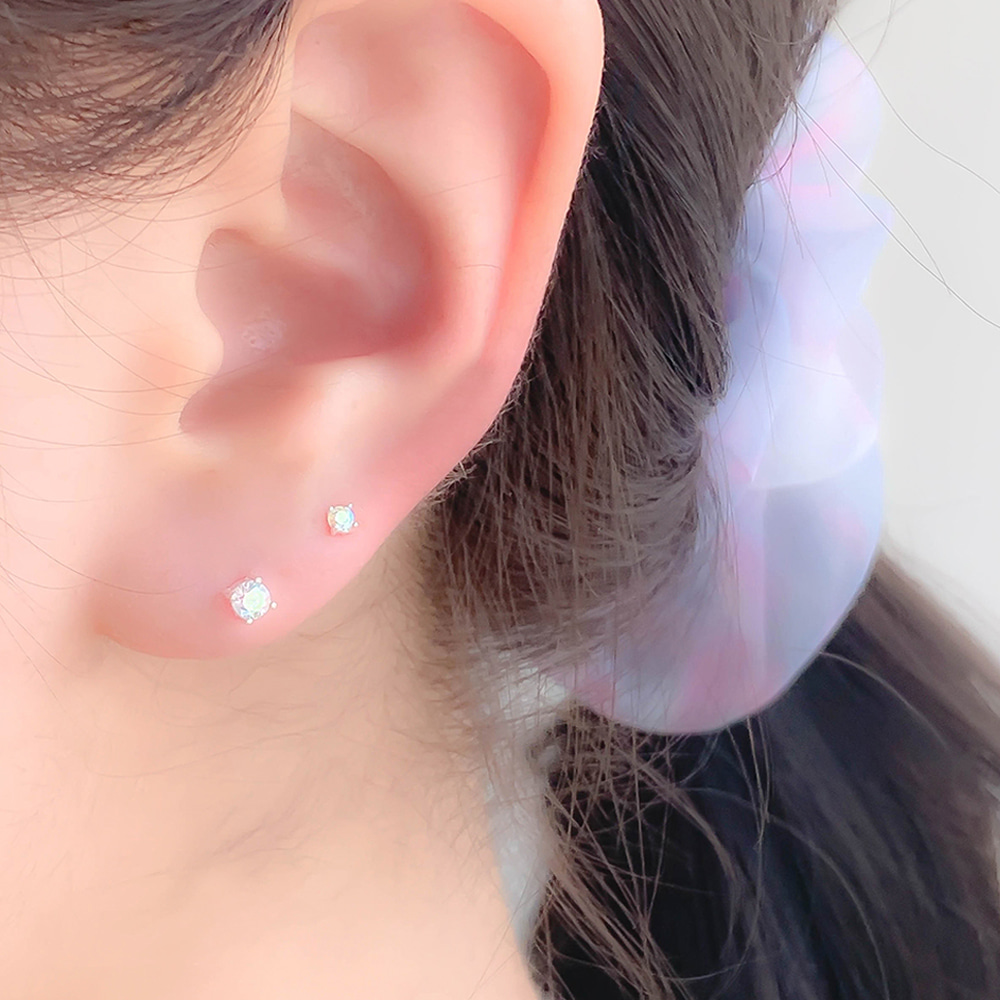 (실버925) 2mm,3mm 초 미니 영롱 오로라 큐빅 귀걸이