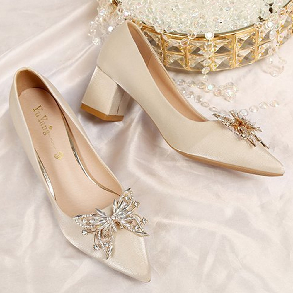 (이벤트220,250) 루이안 5cm 큐빅 새틴 통굽 구두 2color
