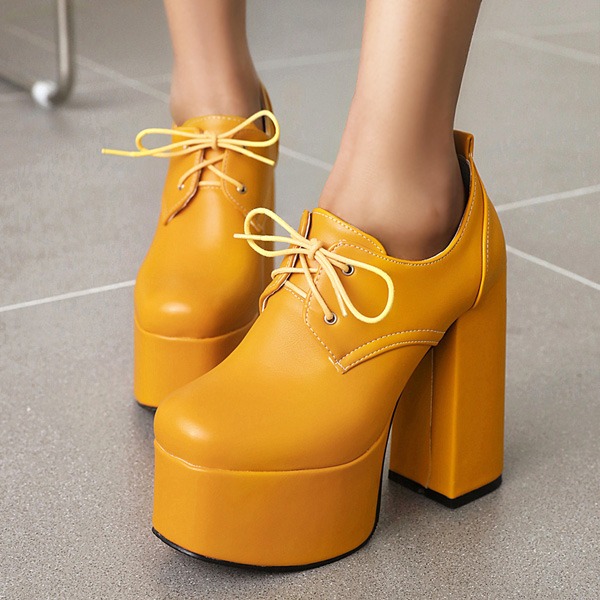 시크덩꼬 심플 레이스업 가보시 통굽힐 (14cm)