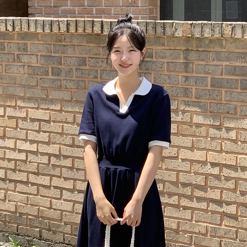 1만장 돌파✨ 데일리 반팔 배색 카라 플레어 롱 원피스 휴양지롱원피스 데일리룩,나들이룩,여행룩,휴양지룩,휴가룩,바캉스룩 op11376