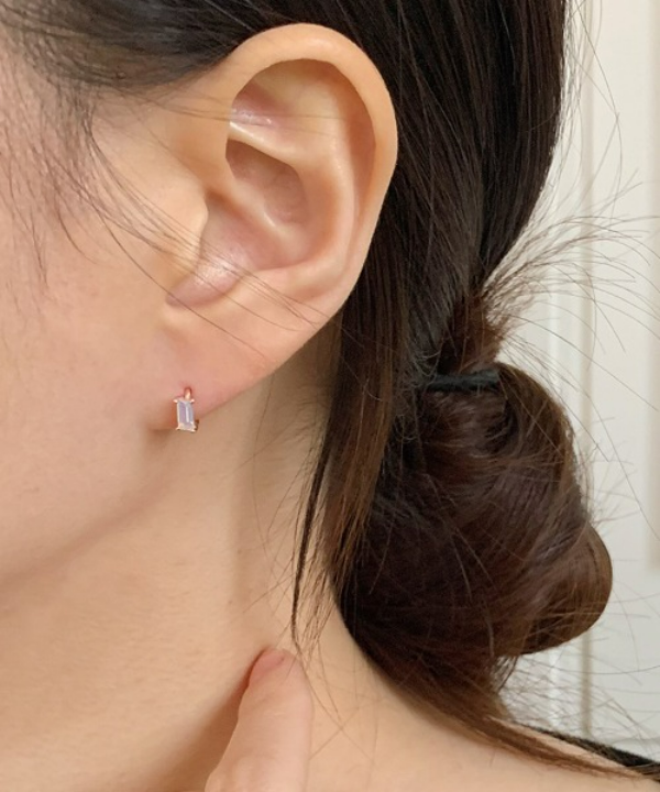[무배] 925실버 수정 원석 사각 미니 원터치 링귀걸이