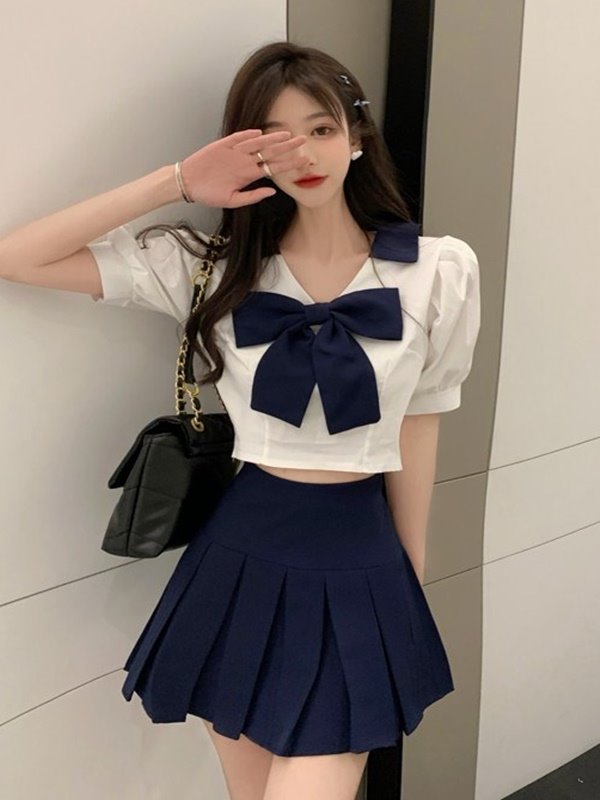 앞 왕리본 스쿨룩 교복룩 위아래 코디세트