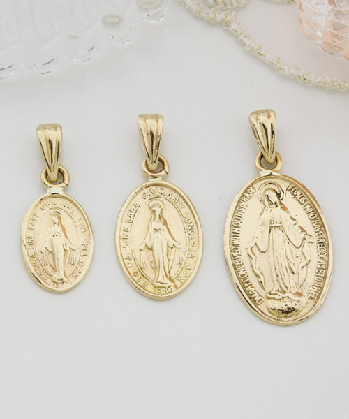 14K18K 묵주 기적의 패 양면 십자가 성모 마리아 코인 펜던트 목걸이