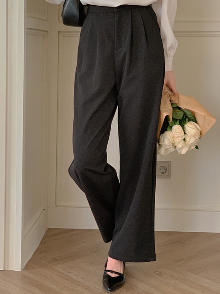 [1천장 돌파✨] [25-36][숏/기본/롱] 델르미 스판 속밴딩 하이웨스트 핀턱 와이드 슬랙스 팬츠 ( 봄-가을-출근룩-오피스룩-데일리팬츠-데일리룩-하객룩-격식룩-빅사이즈-36사이즈-자체제작-몸매보정-핀턱 )