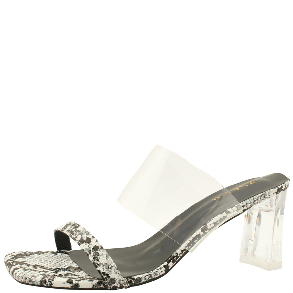 뱀피 투명 스트랩 하이힐 뮬 슬리퍼 7cm