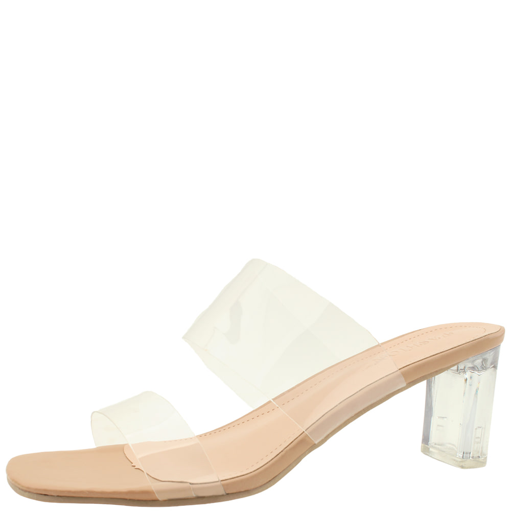 유리 굽 투명 뮬 하이힐 슬리퍼 7cm