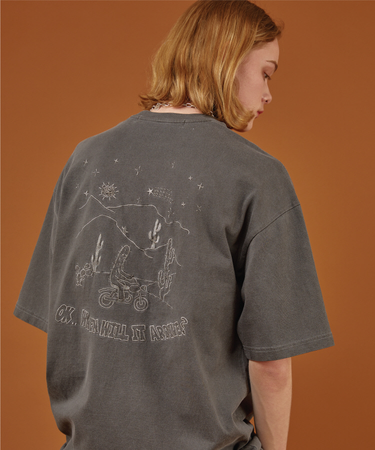 오아시스 피그먼트 자수 반팔 딥챠콜