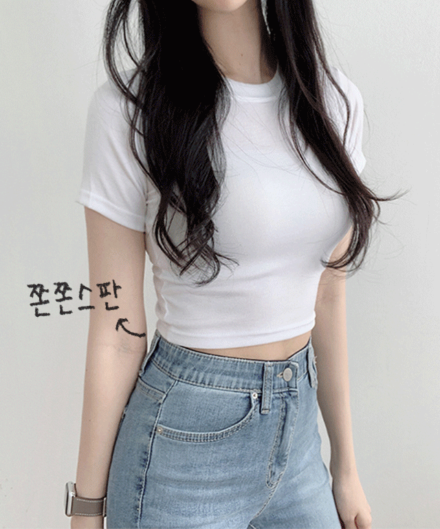 [1+1할인] 라운드넥 쫀쫀 미니 크롭 반팔 티셔츠 7color