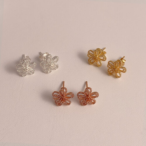 실버925 입체 꽃 수술 플라워 스터드 귀걸이 3color (골드,실버,로즈골드)