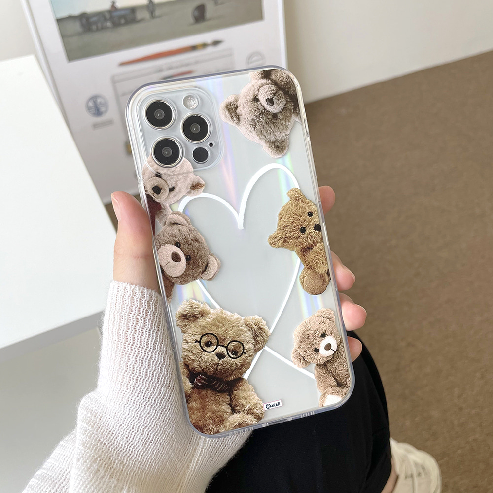 [아이폰14입고/당일출고/MADE] 똘망 곰돌이 하트 프레임 홀로그램 아이폰케이스