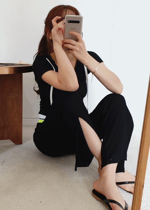 [세트가/핏대박] 골지 형광배색 반팔 후드티 옆트임 부츠컷 트레이닝세트