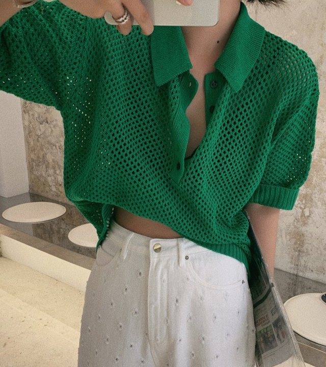 수입 여성의류 보세 폴로 펀칭 여름 비치패션 반팔 카라 티셔츠