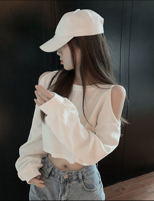 [당일출고/봄신상/긴팔크롭티] 흰색 회색어깨 트임 꾸안꾸 정석 단색 크롭 셔츠 기본템 데일리룩 데이트룩 여친룩