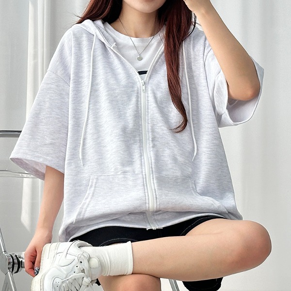 [자체제작] 루즈핏 반팔 후드집업 5컬러 교복템 여름필수