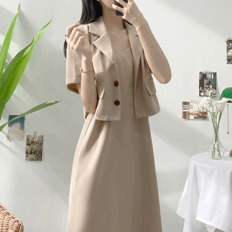 [자켓+원피스set/3color/국내생산] 숏자켓 나시 롱 원피스 코디 투피스 세트