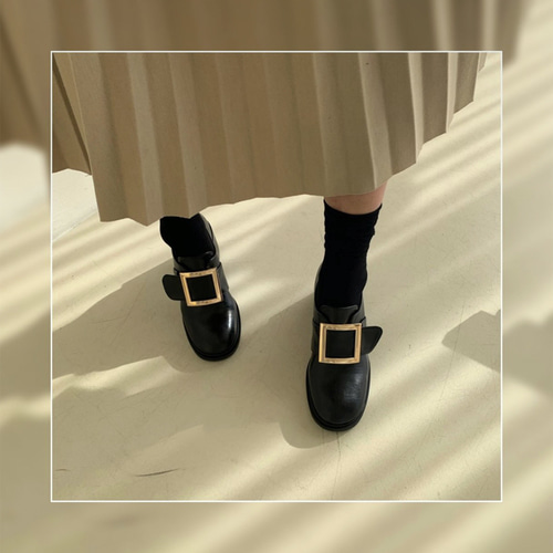 헤즐리 로저 골드 포인트 미들힐 사각 펌프스