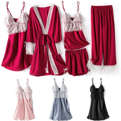 레이스 리본 슬립 신혼선물 섹시슬립 이벤트속옷 란제리 브라캡 실크 슬립 원피스 가운 5종세트