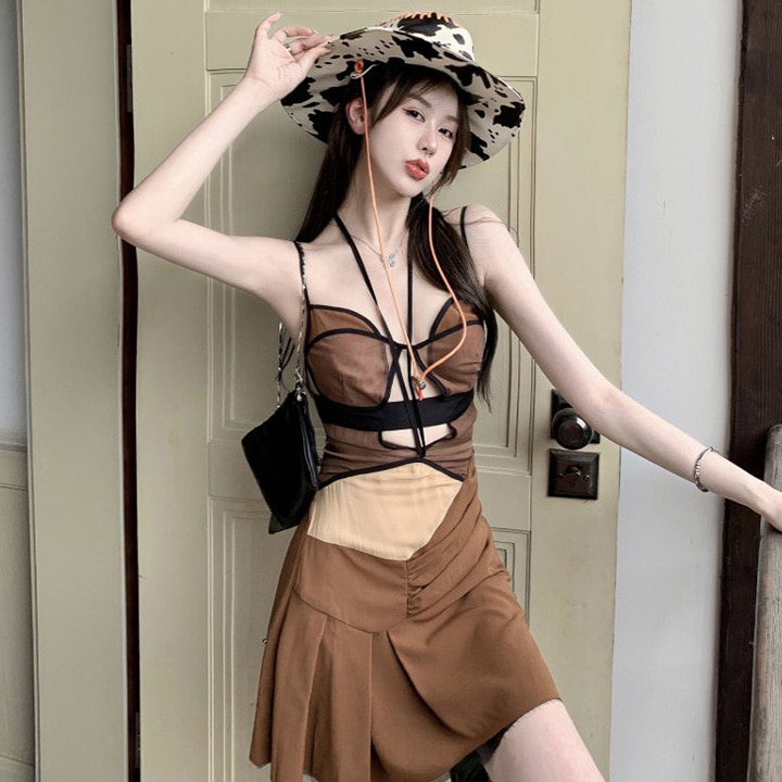 무료배송 카우걸 언발플리츠 뷔스티에원피스