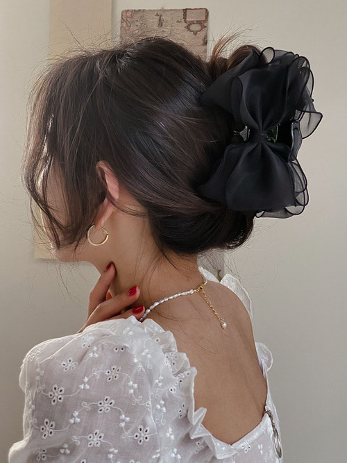 나비 꼬불 시스루 왕리본 올림머리 헤어 집게핀 6color